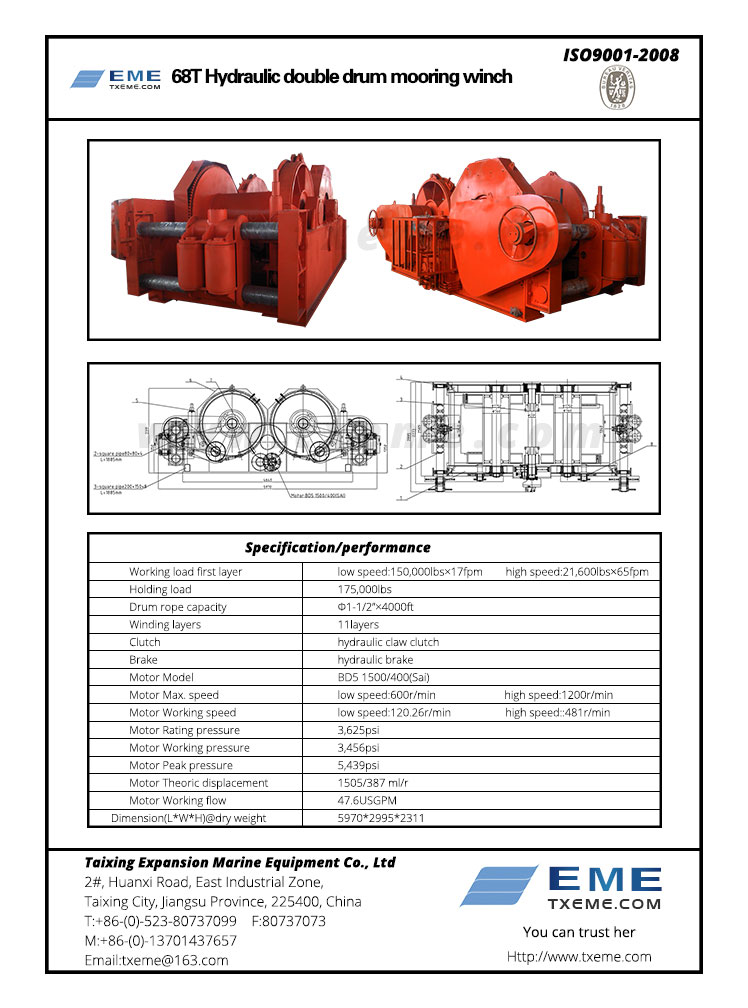68T双卷筒液压绞车资料