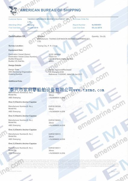 资料主题:38mm anchor capstan with ABS certificate 浏览次数:[ 18 ]