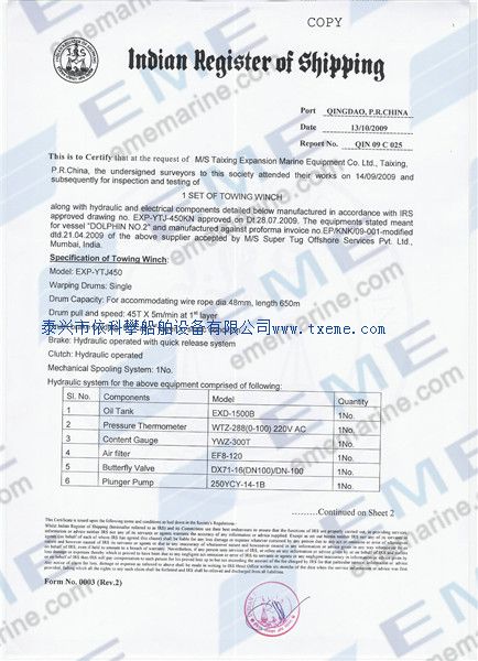 资料主题:45T Towing winch with IRS certificate 浏览次数:[ 23 ]