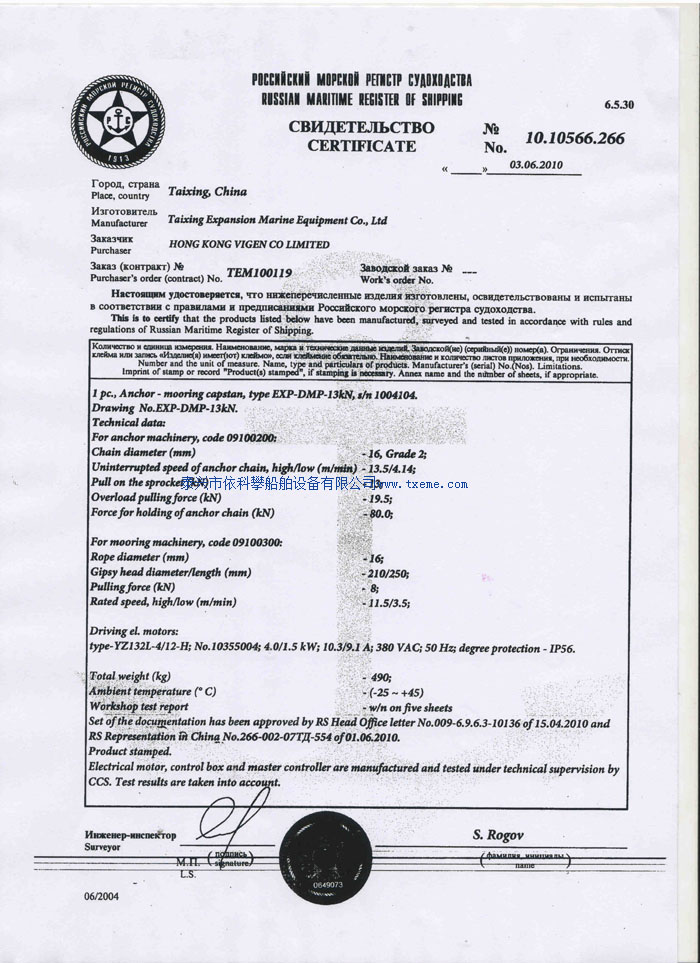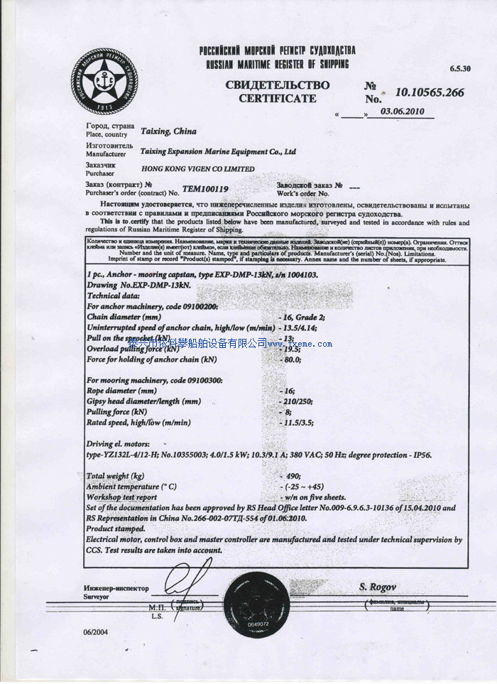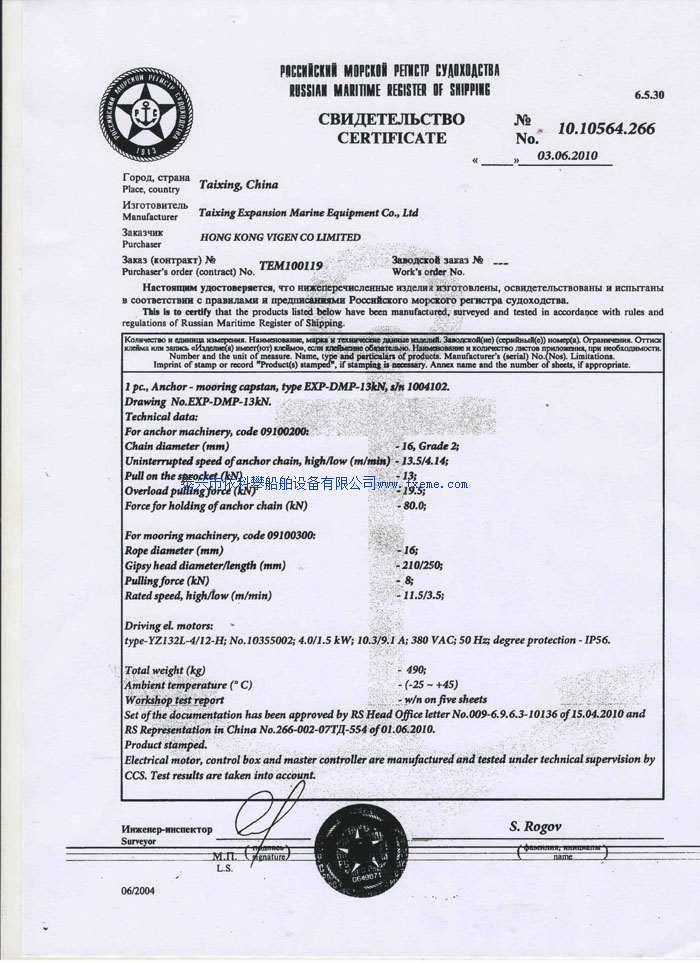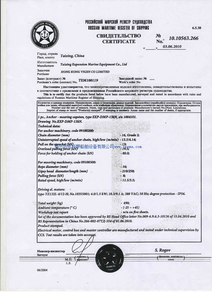 5台起锚绞盘通过俄罗斯船级社验收,交付俄罗斯船东。