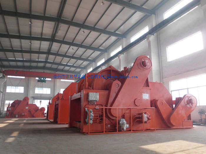 四台准备发货的海洋吊装船上的 90T双卷筒液压定位绞车